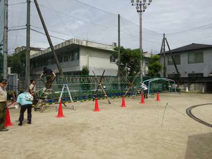 運動場にはミニ新幹線、アスレチックのような遊び場、警察官の衣装を着れるコーナーなど。こちらもたくさんのコーナーがあります。