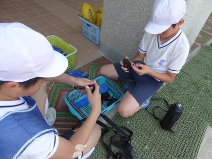タグラグビーもどんどん上手になってきました。使った後のタグやゼッケンもしっかり片付けています。