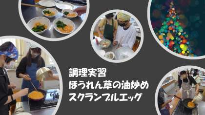 6年生 家庭科〜調理実習〜 公開日 2024/06/13 更新日 2024/06/13 6年生のページ 調理実習をしました。今回は、ほうれん草の油炒めとスクランブルエッグを作りました。手軽にできる料理なのでお家でも挑戦してほしいと思います。