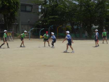 6年生 体育科〜タグラグビー〜 公開日 2024/06/14 更新日 2024/06/14 6年生のページ タグラグビーの学習も終わりに近づいてきています。何度もゲームを行ったことでパスやフェイントが上達してきました。暑い中ですが、みんな一生懸命取り組んでいます。