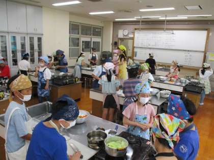 前回の調理実習の反省をいかして、班の中で声掛けし合ったり役割分担をしたりして、スムーズに進めることができました。