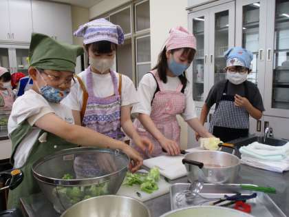 班のみんなで力を合わせて、包丁やガスコンロ、熱された鍋や熱湯の取り扱いに気を付けながら、作ったサラダを嬉しそうに食べていました。