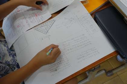 国語では新聞づくりに挑戦です。みんなが読みたくなるような新聞を作りたいという気持ちが高まっています。本物を参考にする姿、役割を分担する姿、インタビューをする姿が見られました。