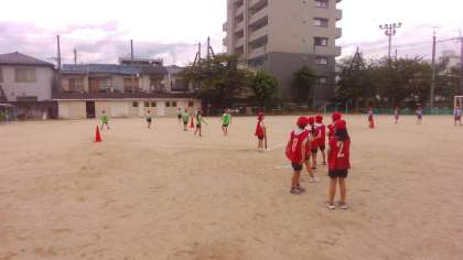 今日は、最後のハンドベースボールの学習でした。これまで学んできたことを生かして、守る人がいないところを狙ってボールを打ったり、友だちと協力して学習したりすることができました。