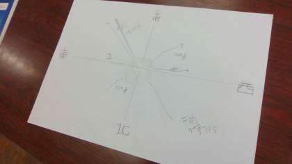 どうしてかげの向きが変わっていくのかについて考えました。そして、観察を通して、太陽の向きと反対側にかげができ、太陽の動きにあわせてかげも動いていくことを知ることができました。