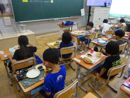 今日の給食は、黒糖コッペパン・牛乳・トマトクリームシチュー・ひじきのソテーでした。