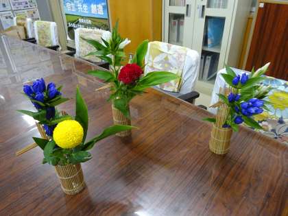 彩(いろどり) 公開日 2024/09/10 更新日 2024/09/10 学校の様子 地域の方が毎月お花を生けに来てくださいます。 今月のお花は「ピンポン菊」「リンドウ」などです。 校長室に生けてくださった花がとても映えます。 校長室以外にも、いろんなところにお花をいけてくださっています。 いろどり豊かな学校です。