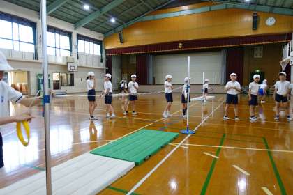 4年生 体育「高とび」 公開日 2024/09/12 更新日 2024/09/12 4年生のページ 4年生の体育では、高とびの学習をしています。助走を意識することで前回よりも高くとぶことができたようです。教え合う姿も見られました。