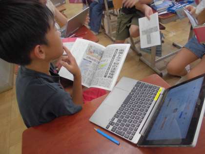 5年生 国語 公開日 2024/09/12 更新日 2024/09/12 5年生のページ 国語では「新聞を読もう」の学習をしました。新聞記事を読み、記事について考えたり比較をしたりしながら、新聞の作りや工夫について学習しました。