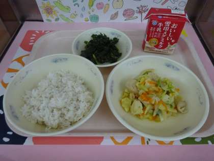 香ばしいみその味で、ご飯とよく合いました。鶏ちゃんという名前の可愛さも子どもたちは気に入ったようでした。キャベツのシャキシャキ感も好評でした。