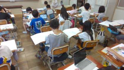 3年生 図画工作科「ことばから思いうかべて」 公開日 2024/09/18 更新日 2024/09/18 3年生のページ 読み聞かせを聞いて、思い浮かんだ様子を絵で表す学習をしています。登場人物の描き表し方を工夫しながら頑張っています。