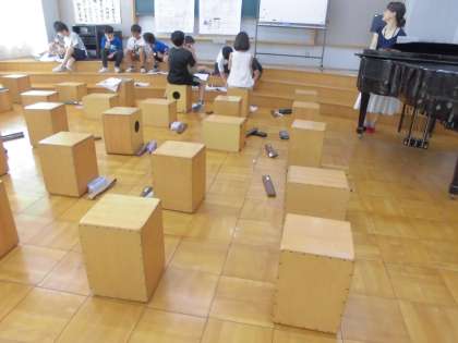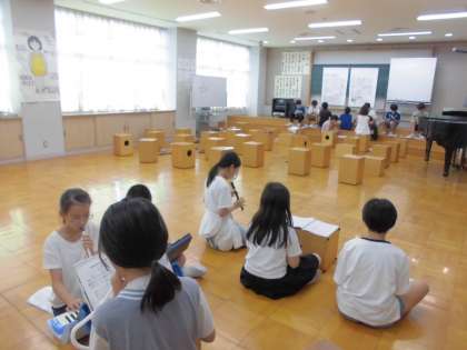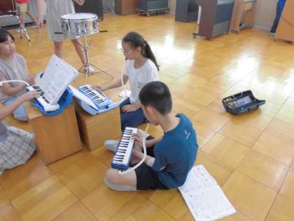 5年生は、「キリマンジャロ」という曲を練習しています。みんなですばらしい合奏にするために、パートに分かれて練習しました。