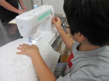 おひさま学級 6年 家庭科「思いを形にして 生活を豊かに」 公開日 2024/09/20 更新日 2024/09/20 おひさま学級 6年生は、家庭科の学習で、ナップザックを作っています。 自分で選んだお気に入りの布で作るということで、完成を目指して作っています。 返し縫いをするところに気を付けて、ミシンで縫うことができました。