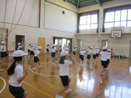 2年生 体育科 公開日 2024/09/25 更新日 2024/09/25 2年生のページ 初めて学年をそろえて運動会のダンスの練習をしました。子どもたちは、熱心に踊っている様子でした。運動会に向けて頑張りましょう。
