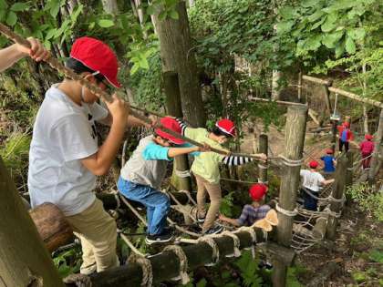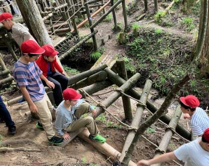 オリエンテーリングで疲れているかと思いきや、アスレチックに来ると、また元気いっぱいに遊んでいます。スリルを楽しんでいます。