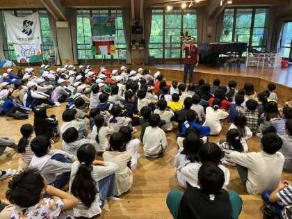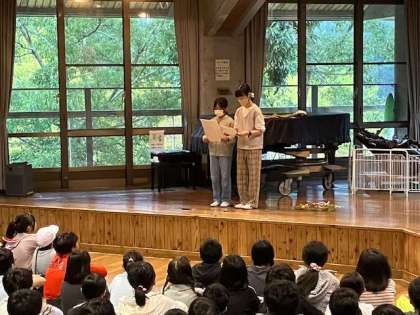 桂東小学校と合同で朝の集いをしました。