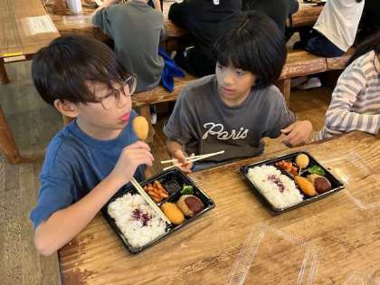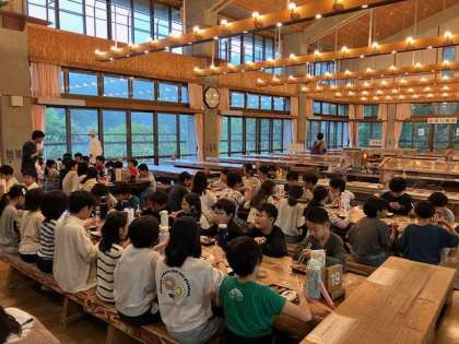 5年 花背山の家 昼食 公開日 2024/10/03 更新日 2024/10/03 5年生のページ 昼食は、食堂でハンバーグ弁当を食べました。この後は、2グループに別れてクラフトと館内ラリーをしていきます。