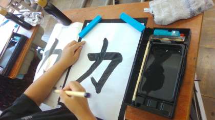 3年生 書写「『おれ』と『はね』の筆使い」 公開日 2024/10/16 更新日 2024/10/16 3年生のページ 「おれ」と「はね」に気を付けて、「力」という文字を毛筆で書きました。上手に書けるように集中して取り組む姿が素晴らしかったです。