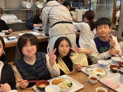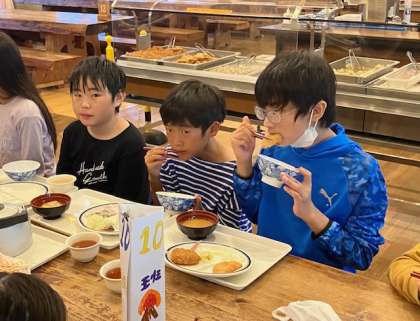 今日は、お風呂も夕食も早目です。これからのキャンドルファイヤーに向けてしっかり食べましょう。バイキングの取り方も随分と慣れてきました。