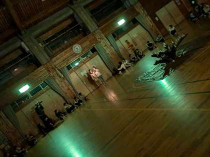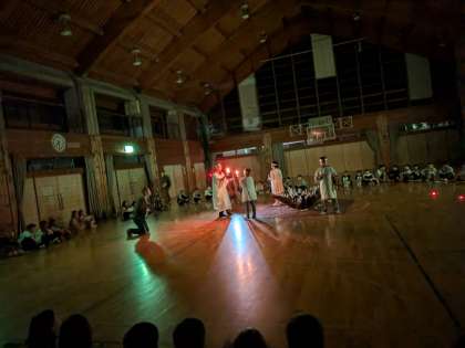プレイホールでキャンドルファイヤーが始まりました。厳かな雰囲気の中で点火したあとは、ダンスメドレーで盛り上がりました。