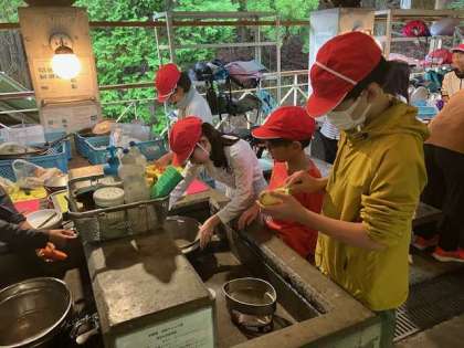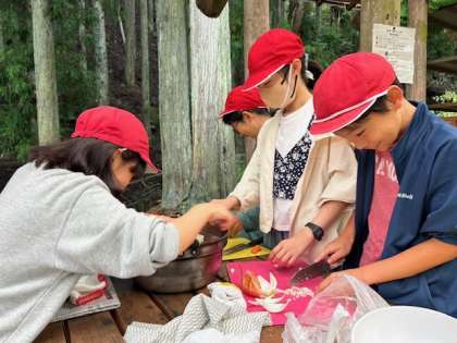 カレー作りが始まりました。おいしい昼食にするために頑張りましょう。