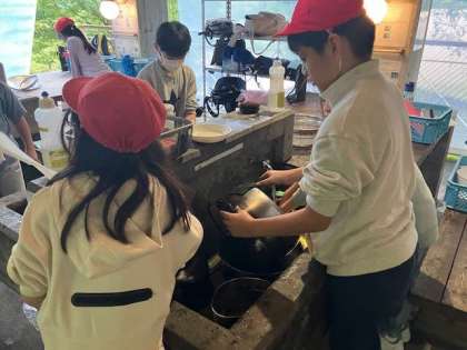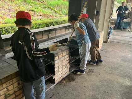野外炊事は片付けも一仕事です。使ったかまどや調理器具をピカピカにして帰りましょう。