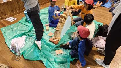 おひさま学級 5年 花背山の家3日目 公開日 2024/10/04 更新日 2024/10/04 おひさま学級 今日も雨が続き、予定変更で朝からアーチづくりをしました。 3日目もとても元気に活動しています。