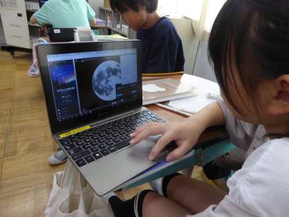 月の見え方は・・・GIGA端末を使い京都市やインドネシアなど様々な位置から月の見え方を確認しました。