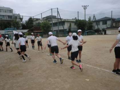 今日から運動場での練習がスタートしました。運動場は体育館と違ってとても広いため、位置取りが難しく、移動距離も長くなります。そのため、動き出しが遅れると、間に合わなくなったり、列が乱れたりしてしまいます。当日胸を張って演技ができるよう、練習を重ねていきたいと思います。最後は一人一人の「つながり」を大切に、ハイタッチで終わりたいと思います。