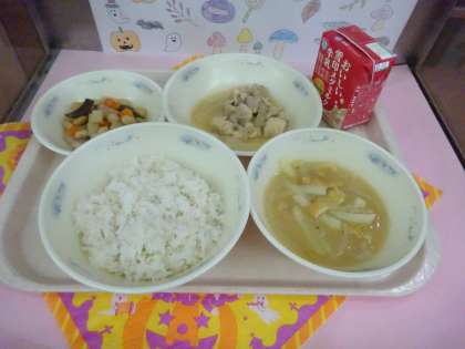 10月7日(月)の給食は、麦ごはん・牛乳・鶏肉のあまから煮・五目煮豆・みそ汁でした。