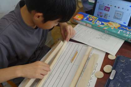 4年生の図工では、ギコギコトントンクリエイターの学習をしています。この日はのこぎりの使い方を学習しました。のこぎりを初めて使う人が多いなかで、協力したり、教え合ったりする姿が見られました。