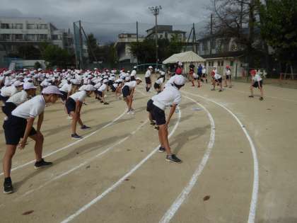 運動会に向けて全校練習を行いました。6年生は、司会進行や準備運動などの係で頑張っていました。当日まであと少しです。一生懸命に取り組んで素晴らしい運動会にしてほしいと思います。