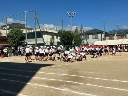 3年生「台風の目」です。スピードを調節して走ったり棒を飛び越えたり工夫して頑張っていました。