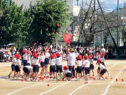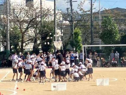 1年生「玉入れ」です。 どの対戦もいい勝負でした。
