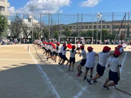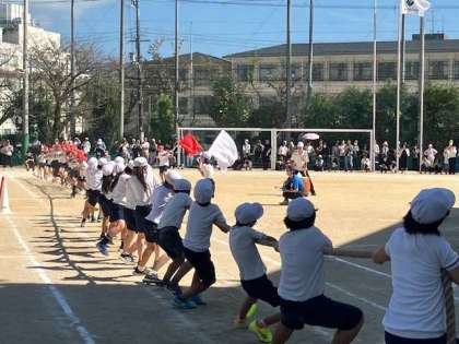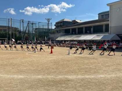 5年生「綱引き」です。 負けるものかという気合いが伝わってきました。