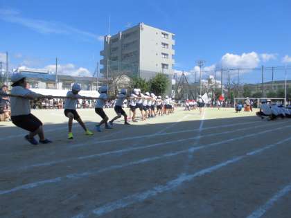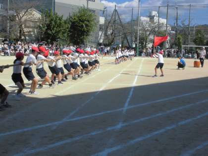 5年生は運動会で団体競技として「綱引き」をしました。花背山の家で身に付けた団結力を生かして、すばらしい試合になりました。