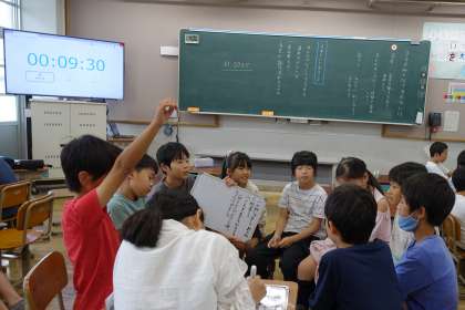 4年生では「クラスみんなで決めるには」の学習をしています。司会や記録、参加者など役割を決めて、その役割に応じて話し合いを進めました。初めは司会が大事という意見が多かったですが、話し合いの回数を重ねるなかで大多数の参加者の姿勢も大事だと気づくことができました。