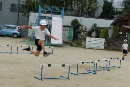 4年生 体育「ハードル走」 公開日 2024/10/23 更新日 2024/10/23 4年生のページ ハードル走の学習が始まりました。インターバルを同じ歩数でリズムよく走ることを意識して活動しました。上手な人の動きを見て学習したり、教え合ったりする姿が見られました。