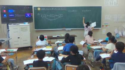 算数科では、関係図を使って、何倍かを求める学習をしました。図を書いたり、説明したりすることができるように頑張って学習しました。