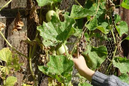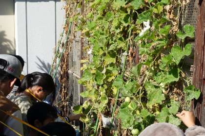 4年生では「秋の生き物」の学習をしています。すっかり寒くなり、外の生き物たちの様子が変わっていました。この日はヒョウタンの様子を観察しました。夏と比べて大きくなっていたり、色に変化があったりしました。