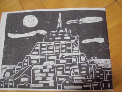図工では版画をしています。いよいよ彫り終わり、刷る作業に入る人も出てきました。刷った後は、乾かしてから裏に彩色していきます。