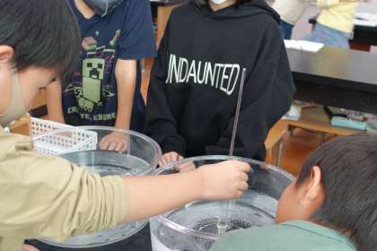 4年生では「ものの温度と体積」の学習をしています。この日は空気をあたためたり、冷やしたりしました。実験から、温度によって空気の体積は変化していることがわかりました。
