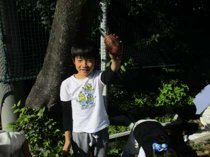 運動場の畑で育てていたお芋とじゃがいもを収穫しました。地域の方々に収穫の仕方を丁寧に教えていただきながら、収穫することができました。子どもたちは、大きなじゃがいもやお芋を見つけた時はとても喜んでいる姿が見られました。