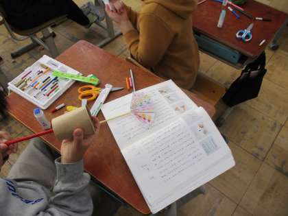 国語の学習では、紙コップ花火の作り方の文章を読んで正しく紙コップ花火を作る学習をしました。子どもたちは自分で文章を読んだり写真を見たりして正しく作ることができました。