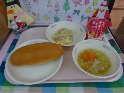 今日の給食は、ミルクコッペパン・牛乳・ペンネの豆乳グラタン・野菜のスープ煮でした。