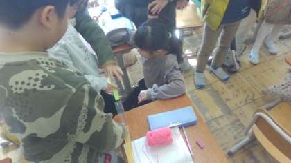 2年生 算数科「100をこえる数」 公開日 2025/01/10 更新日 2025/01/10 2年生のページ 毛糸を使って自分の手を伸ばした時の長さを測りました。子どもたちは班で協力しながら、長さを測ることができました。