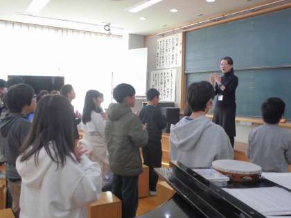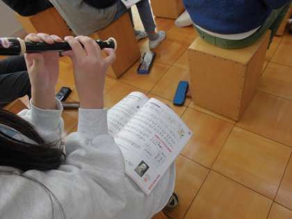 音楽では、29日の音楽鑑賞教室にむけて、京都市歌の練習をしています。手話とともに覚えるところもあり、がんばって練習しています。そのほか、冬休みの宿題だった「冬げしき」の歌を歌ったり、「威風堂々」をリコーダーで演奏したりしました。