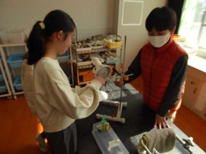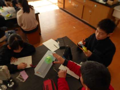 6年生 理科〜発電と電気の利用〜 公開日 2025/02/21 更新日 2025/02/21 6年生のページ 手回し発電機をまわしました。グルグルとリズムに合わせて回しています。電機は発電されたのでしょうか。