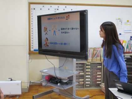 今日は保健室で身体計測をしました。身長と体重を測る前に養護教諭から「水分補給の大切さ」を学びました。