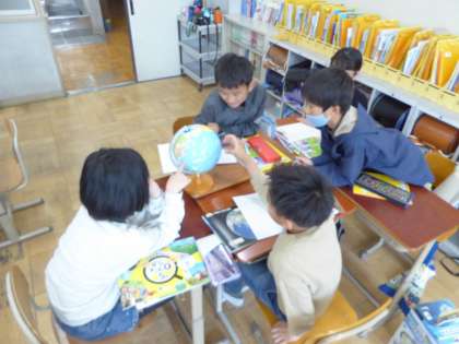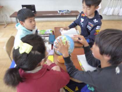 5年生 社会科〜わたしたちの国土〜 公開日 2025/04/14 更新日 2025/04/14 5年生のページ 地球儀に描かれていることは・・・地球儀を見て大陸や海など様々なことを見つけました。地球をそのまま小さくしたものということで、多くのことが分かりました。